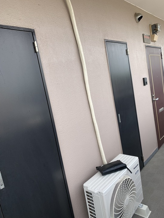 そのうち取り付け工事が難しいのは3階と2階の独立されたエアコン専用の場所に取り付ける工事でした。