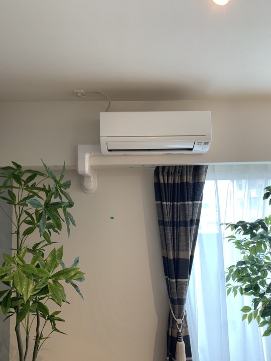室内化粧カバーと室外化粧カバー取り付け、気密処理(おとめちゃん設置)や隠蔽配管、特殊機種(ダイキン製うるるさらら)などの色々大変な工事もあり、約1ヶ月かかっちゃいました。