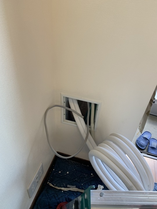点検口の様のが2箇所あるため、新品冷媒管を使うことが可能です。